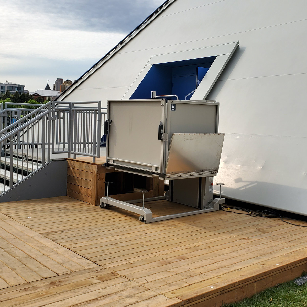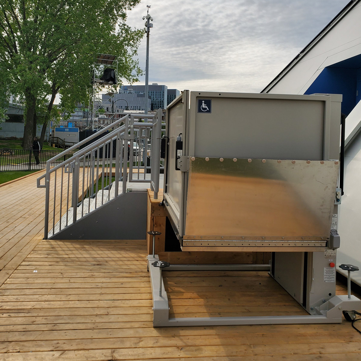 Safety features include under platform obstruction detection, emergency stop switch, anti-skid floor surface, emergency alarm, and much more.