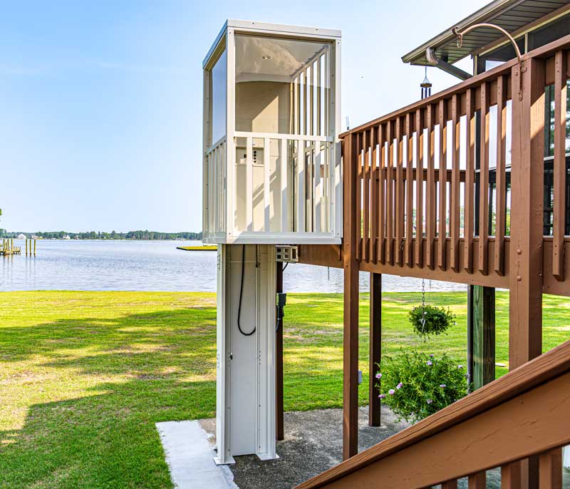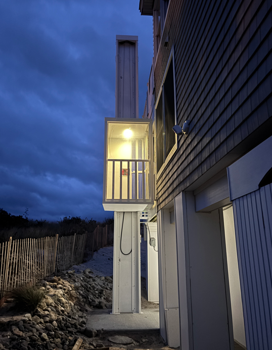 The Crest Outdoor Elevator can operate as a stand-alone unit be installed in an elevator hoistway or in an optional enclosure providing you affordable and safe travel between floors of your home. The Crest Outdoor can accommodate a wheelchair and provides several options for entry/exit. There is no need for a pit nor a machine room on this battery powered, modern elevator.