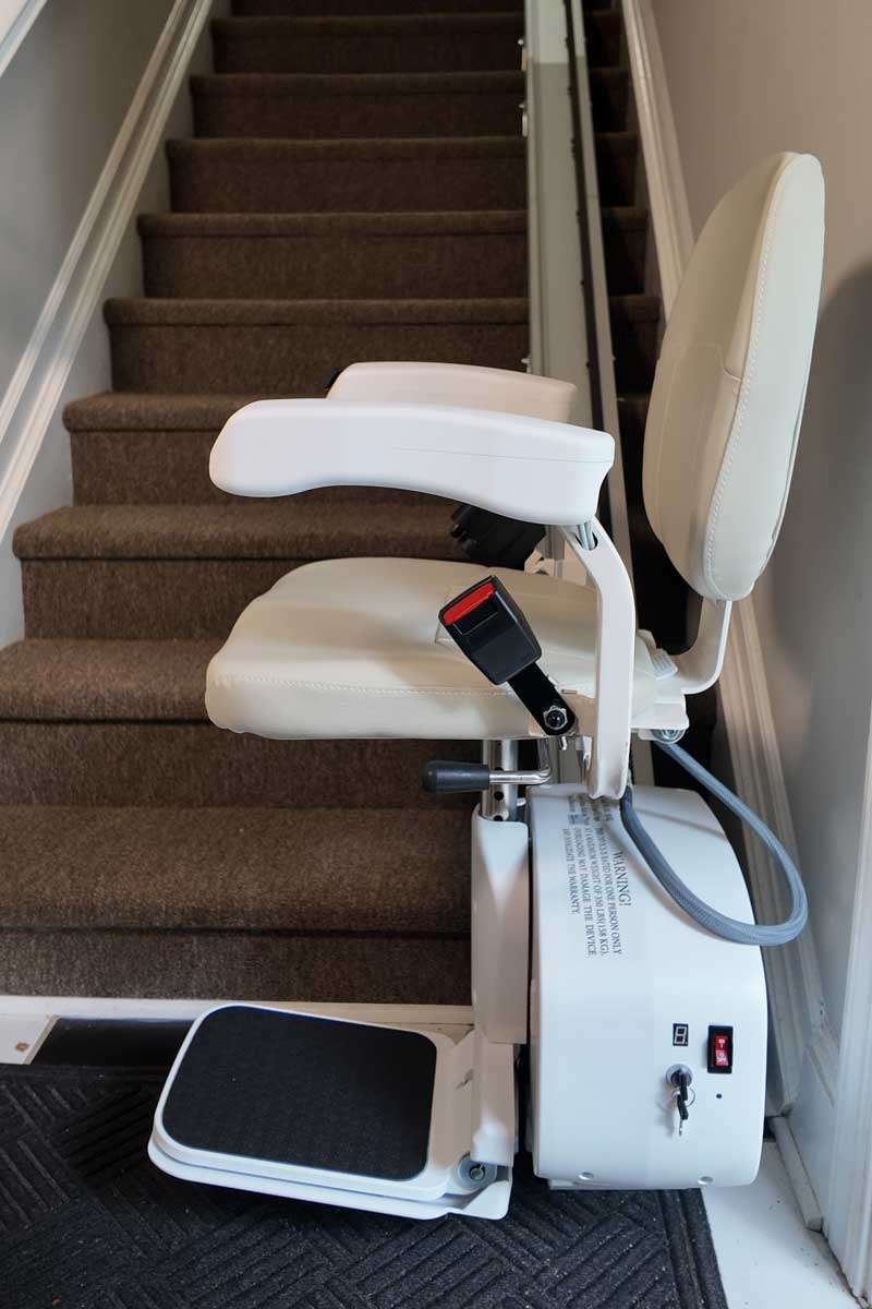 The Crest HD Stair Lift delivers exceptional versatility, heavy-duty performance, and advanced safety features. With a 350 lb. weight capacity, its universal design supports both left and right-side installation, while adjustable armrest width, seat height, and toggle control offer customizable comfort. A 2-position swivel seat ensures safe and easy transfers.