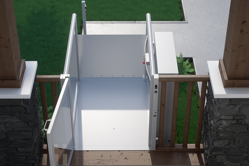 The AmeriGlide Hercules Mini Vertical Lift is the ideal vertical platform lift for outdoor or indoor applications. Great for porches, decks, and garages too! The non-skid epoxy coated floor and galvanized steel panel is weather resistant, even in the harshest conditions.