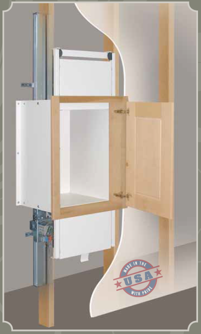 Plug and play simple installation makes installation easy and can be done in half the time as it takes to install other dumbwaiters. The QuickServe II uses a rack and pinion drive so there are no cables, chains, or drums to install. The entire motor and electronics assembly comes pre-assembled on the lower section of the track. Major features include: